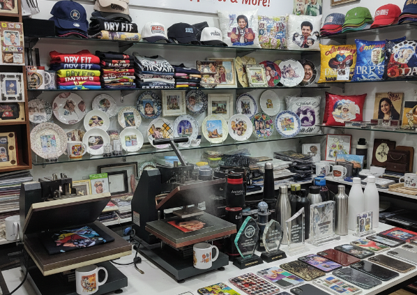 Mug/ T-Shirts / Dry Fit / Polyester Fabric/ Caps / Hats Plates / Tiles / Glass Frames Keytags / Keychains Phone Covers (sublimation blank cases) Cushion Covers / Pillow Cases/ Photo Rock / Crystal / Glass Blocks / Water Bottles / Flasks/ Mouse Pads/ Clocks (sublimation printable clocks) Bags / Wallets / Name boards / Door tags.